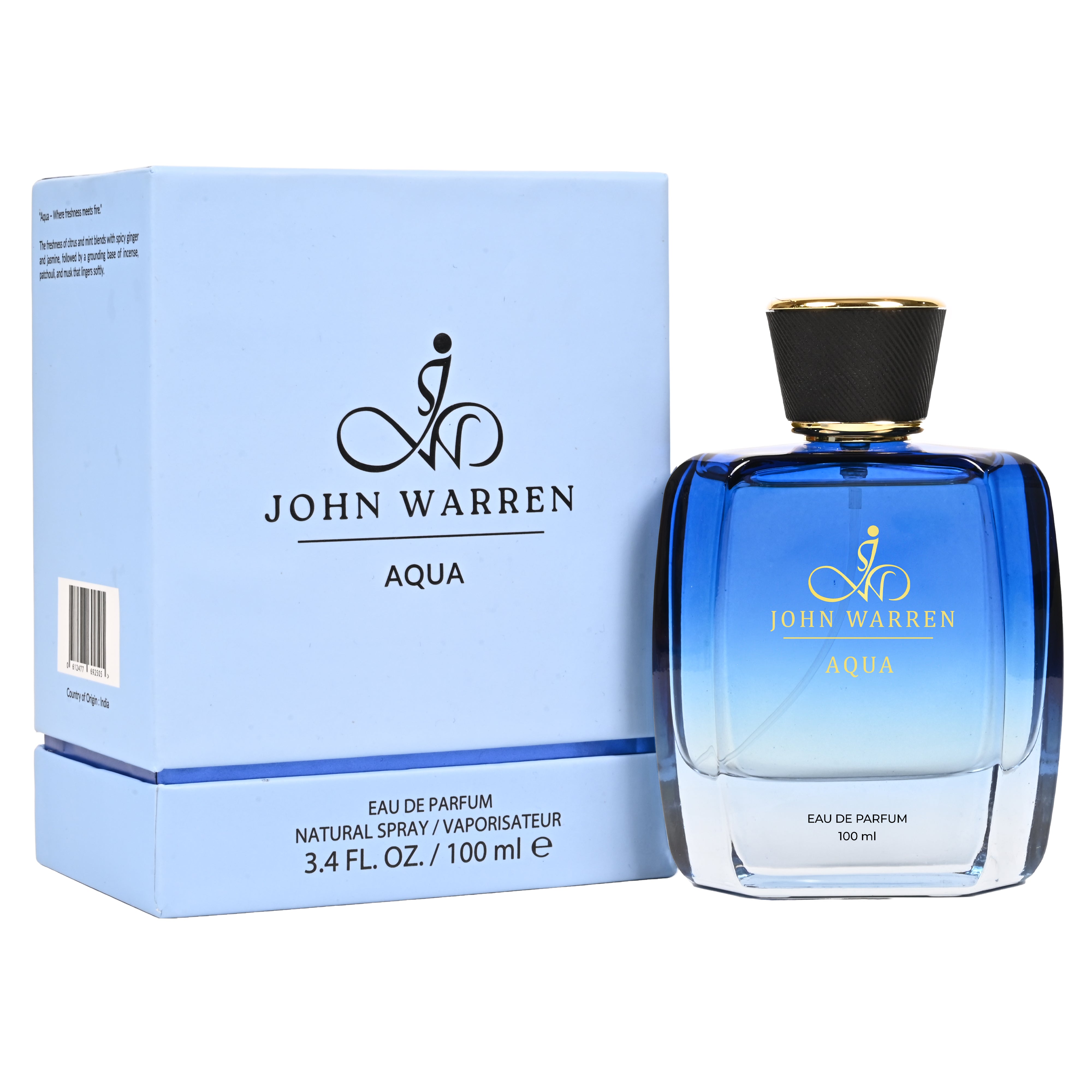 Opening with a refreshing blend of citrus and mint, Aqua awakens the senses with crisp clarity. As it evolves, the heart ignites with the warm spice of ginger layered over elegant jasmine, striking the perfect balance between strength and sophistication.